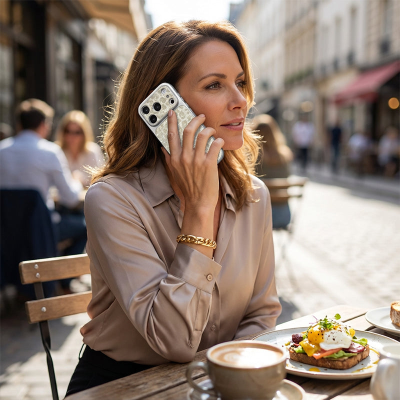 GLITTER MATTE FINISH - Experience a unique tactile sensation. The frosted glitter surface provides a sophisticated shimmer without the slippery feel of glossy cases, ensuring a secure, comfortable grip and standout style.