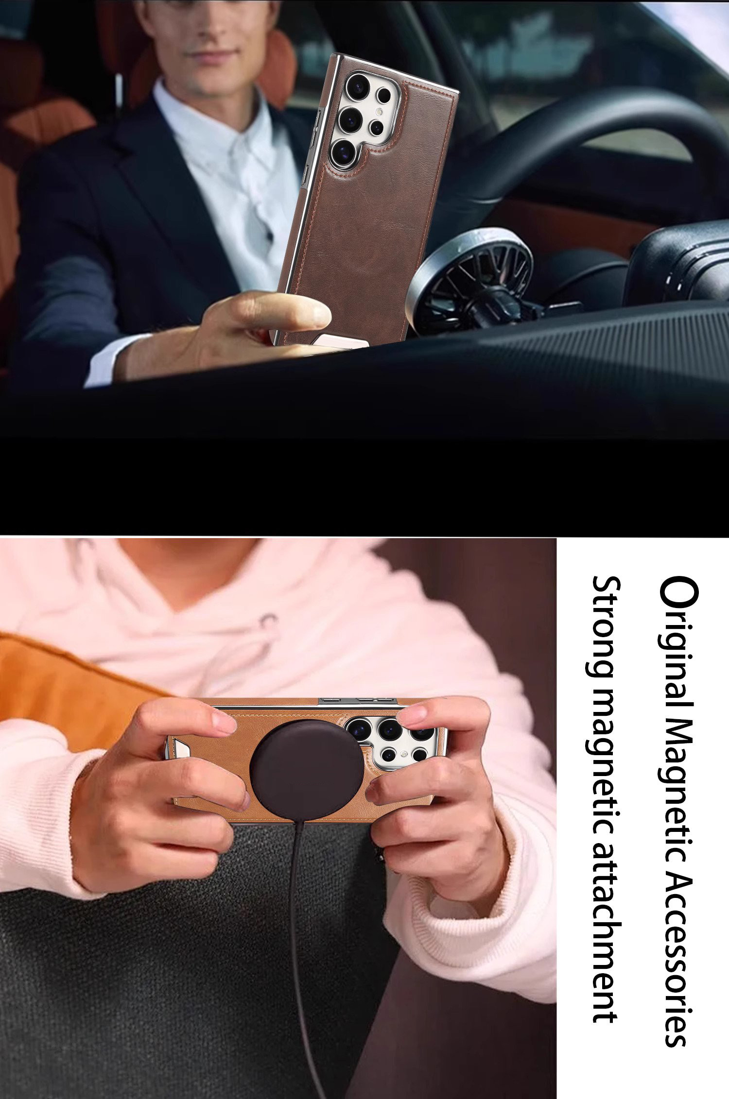 Magnetic Anti-Fall Luxury Faux Leather Phone Case for Samsung