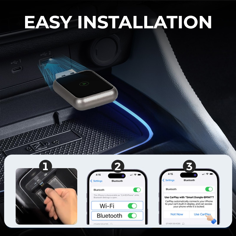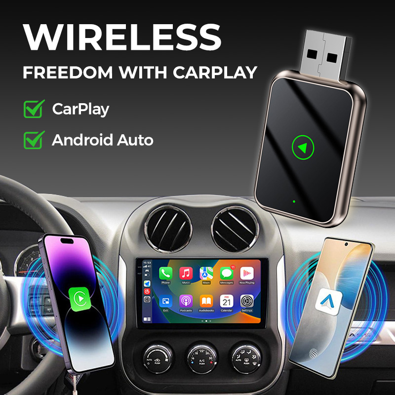 Say goodbye to cumbersome cables and enjoy 100% wireless freedom! With our plug-and-play Carplay Adapter, your smartphone can automatically connect to your car in seconds and use CarPlay and Android Auto wirelessly. Navigation, music listening and call handling are extremely convenient without the need to plug in cables again!
